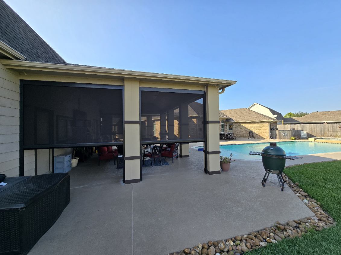 - Protection from the Elements (and bugs!): Perhaps the most important feature for us in Houston is the added bonus of keeping the sun and bugs out. They offer protection against the sun’s UV rays, reducing heat and glare inside the home. This can help in lowering cooling costs and protecting furniture from sun damage.